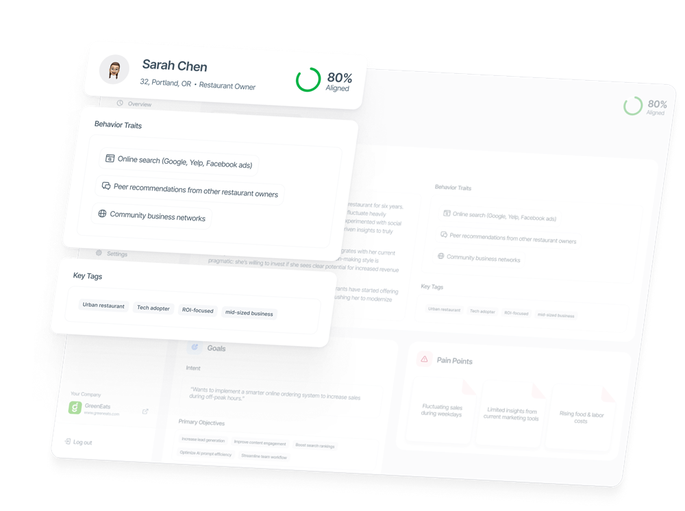 Detailed insights into which customer types find you through AI search and how they perceive your business.