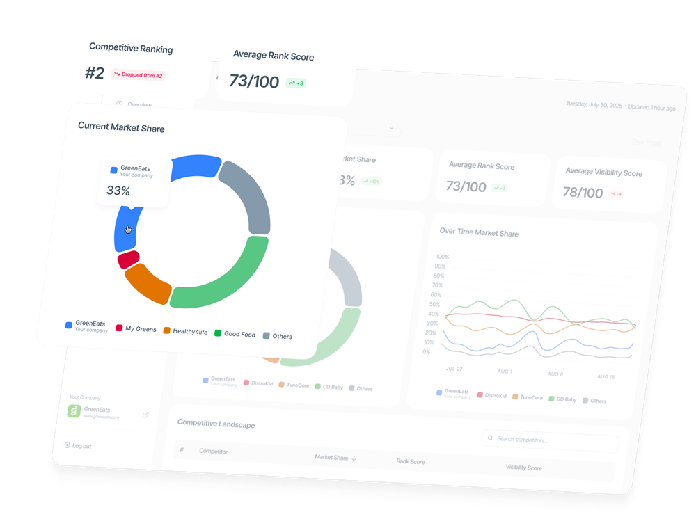 Actionable insights from AI search data that reveal market perception and deliver clear recommendations for growth.